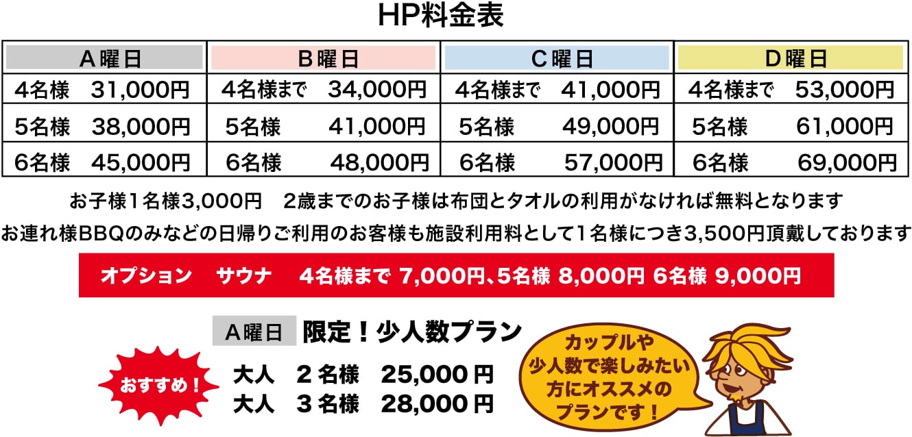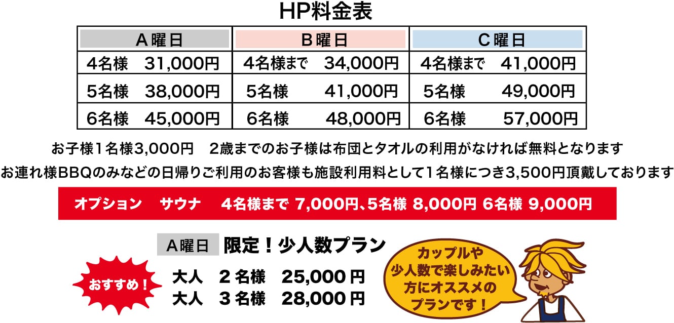 基本的には料金表通りですがお子様の人数など臨機応変にご対応させていただきます。